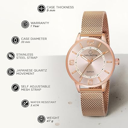Carlington Analog Watches for Women with mesh Strap – CT 2002
